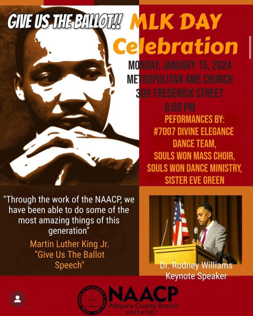 Mark your calendars! @naacpallegany is having a MLK Day Celebration that we are invited to attend.